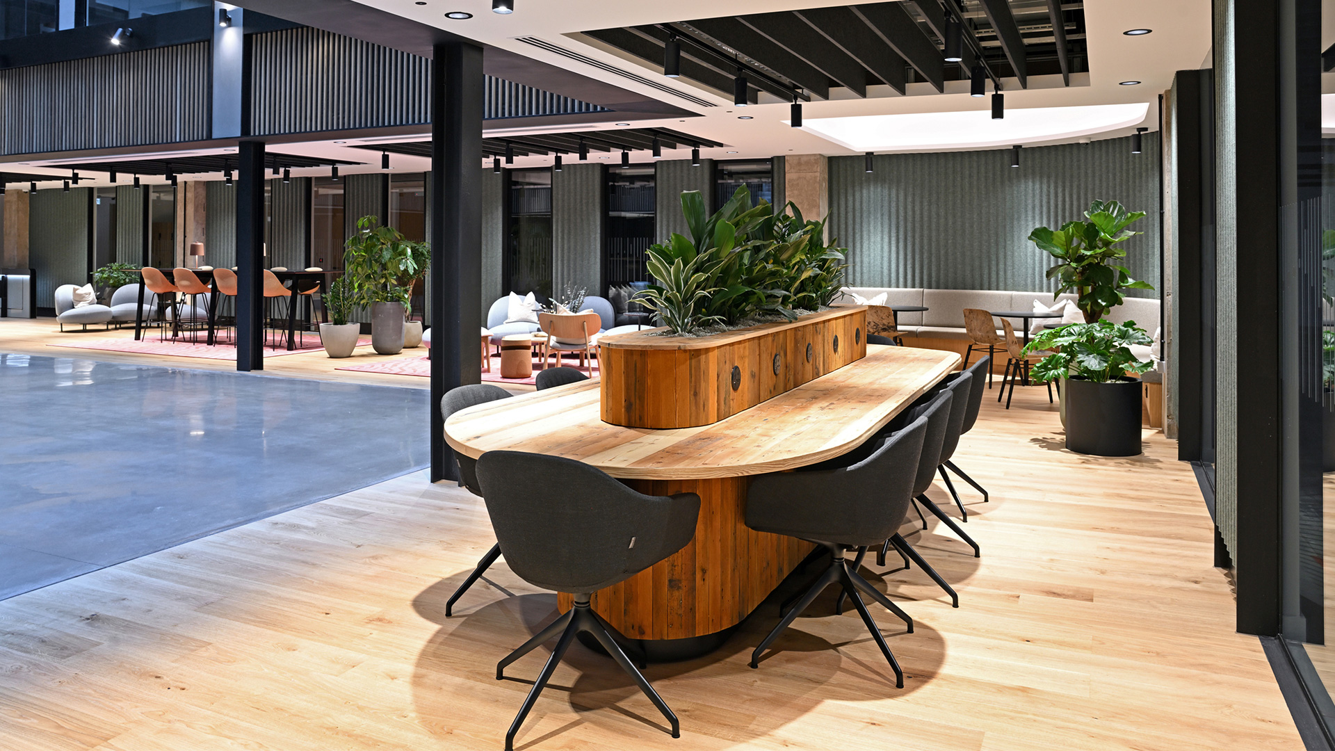 Features include a central atrium with interactive breakout areas and an attractive, planted communal roof terrace, plus 150 secure parking spaces (including 24 with electric vehicle-charging). Tenant amenities are all located on the ground floor and include a multi-functional studio space, 74 cycle spaces and showers/changing rooms.