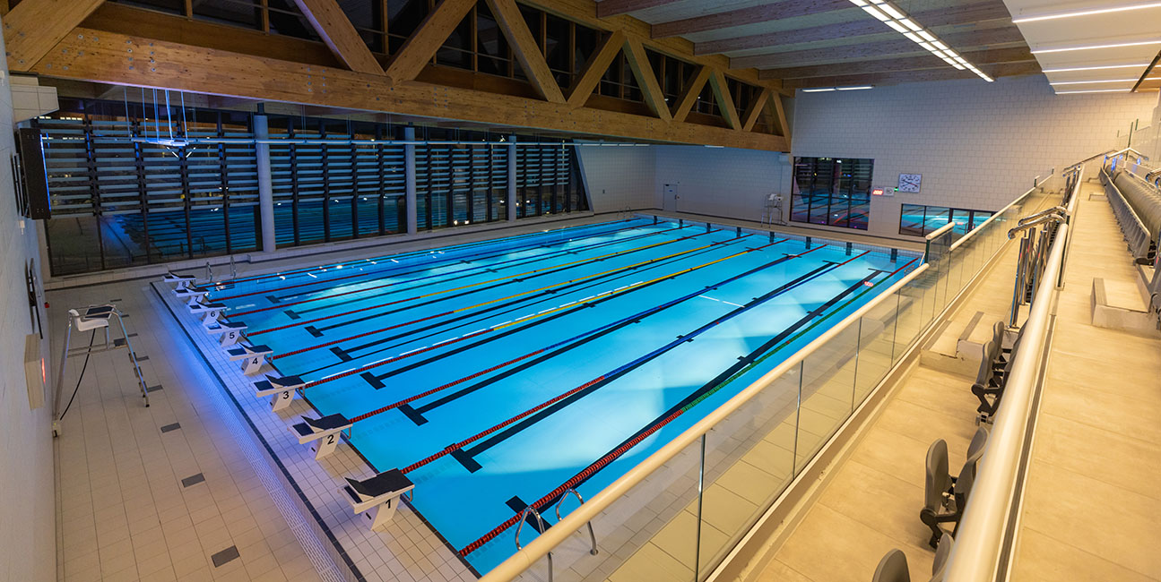 The new centre provides a 25-metre 8 lane competition pool, 20-metre community pool, a children’s confidence pool, and a health and fitness centre. The spa is fitted with a hydrotherapy pool, saunas, treatment and relaxation rooms.