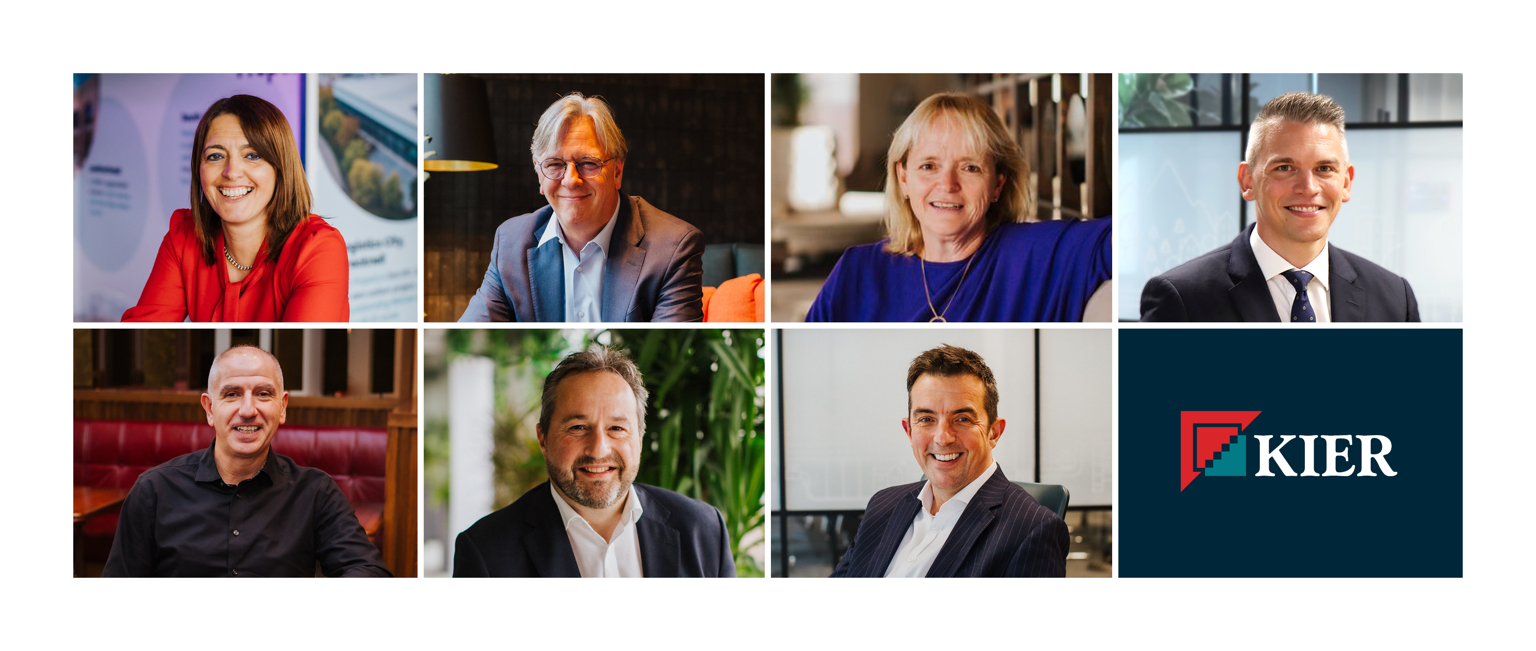 Kier's executive committee pictured from top left to bottom right: Sophie Timms, Stuart Togwell, Louisa Finlay, Martin Staehr, Joe Incutti, Leigh Thomas, James Askew